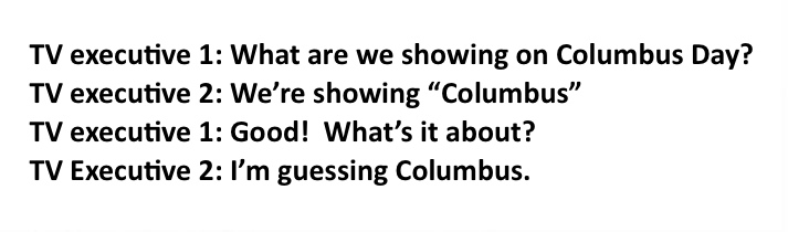 THE MOVIE WAS PLAYING ON A CABLE CHANNEL TODAY (Columbus Day) but it’s not about him AT ALL. I actually watched a little bit of the movie. I knew what the storyline was because I’ve seen parts of it before – not a bad movie although it’s REALLY REALLY SLOW.