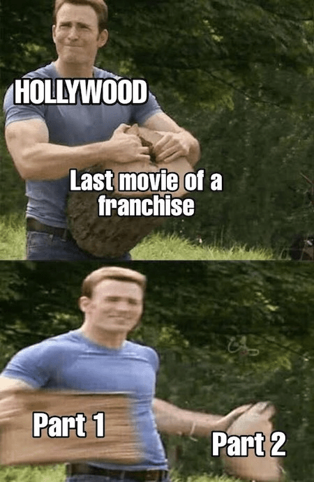 They do seem to be doing that a lot these days. Harry Potters last movie, Hunger Games last movie, this summer is supposedly part 1 of the last “Mission Impossible” movie. Even for movies that aren’t the last in the franchise like “Avengers: Infinity War” and “Avengers: Endgame”.