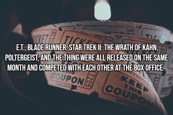 It was June 1982 (over 40 years ago). Only 1 movie – “E.T.” – made over $10 million on their domestic opening weekend. Current movies can make over twice that in a single day.
