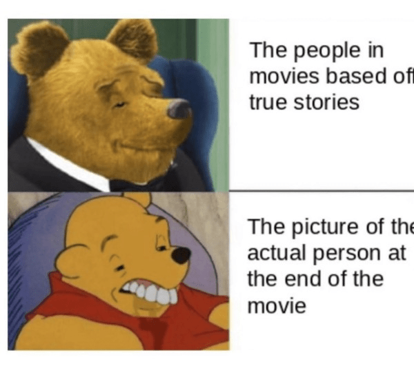 It’s sort of true. Maybe they should stop showing the real people at the end of biopic movies. Unless it’s someone like Elvis where everyone knows what he looked like.