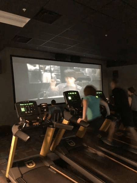 If the movie is UNDER 90 MINUTES I might consider this (depending on how noisy the treadmills are). However, after 90 minutes I’d need a bed to lay on for the rest of the movie.