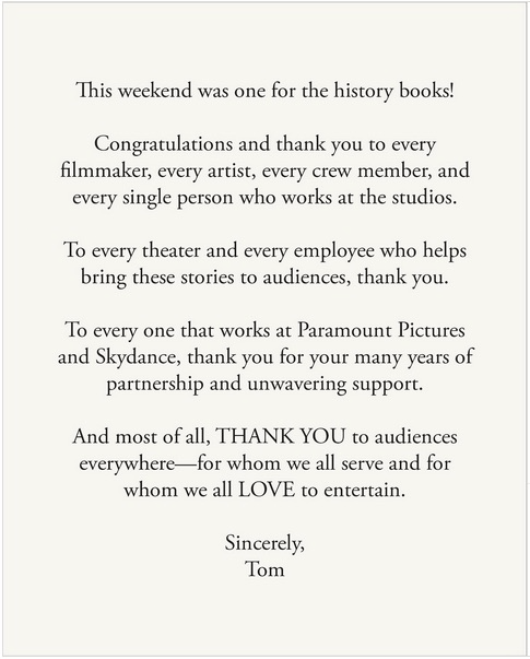 I’m NOT mocking Tom Cruise for posting this message (although it’s kind of weird to thank everyone for being the 2nd biggest movie in the world)……