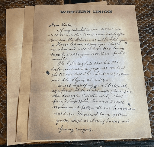 A re-creation of the letter Doc Brown sends to Marty from the past at the end of the second movie.