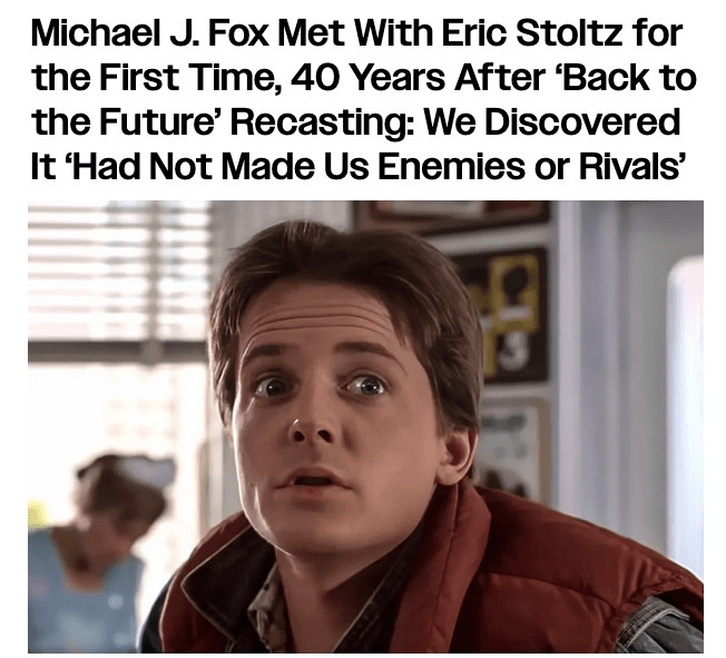 It took 40 years for Michael J Fox to think about speaking to Eric Stoltz, who was first cast in “Back to the Future” according to Michaels new biography.