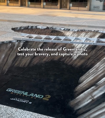 LITTLE BIT OF HUMOR: To promote “Greenland 2 Migration” they had 3D sidewalk artwork at a few locations.