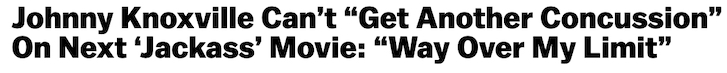 Co-creator of the Jackass franchise, Johnny Knoxville said he has way to many concussions over the years so he’s going to leave that to the other cast members this time.